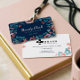 Navy Blue Floral & Foliage Pet Paw Print Pattern ID Badge