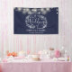 Navy Blue Floral Garland Script Wedding Banner