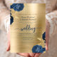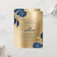 Navy Blue Floral Gold Brushed Metal Wedding Invitation