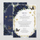 Navy Blue Floral Gold Butterflies Quinceanera Programme