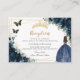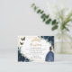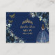 Navy Blue Floral Gold Quinceañera Reception Enclosure Card