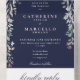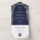 Navy Blue Floral Greenery QR Code Wedding All In One Invitation
