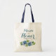 Pretty navy blue floral design for these personalized wedding party tote bags