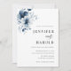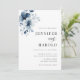 Navy Blue Floral Minimal Plain All in One Wedding Invitation