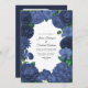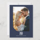 Navy Blue Floral Photo and QR Code Wedding Invitation