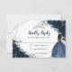 Navy Blue Floral Princess Silver Quinceañera Reply RSVP Card