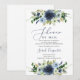 Navy blue floral shower by mail Bridal Shower Invitation
