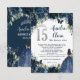 Navy Blue Floral Silver Quinceañera 15 Prayer Card