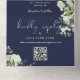 Navy Blue Floral String Lights QR Code Wedding All In One Invitation