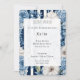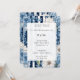 Navy Blue Floral Stripes Birthday Invitation