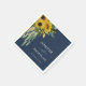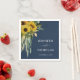 Navy Blue Floral Sunflower Eucalyptus Wedding Napkins. Customise this set of wedding paper napkins with the bride's and groom's name and their wedding date.