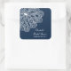 The stickers are really cute. The navy blue is true to the picture and the flower and type are a very crisp white. The only problem is that they are very small. I got these for bridal shower favor tags and the type at the bottom is really tiny. But I do like the design. I think that maybe a 2" square would be better than a 1 ½ ". I like the design all together but the type is small.