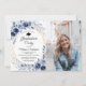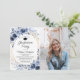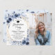 Watercolor Navy Blue Flowers Graduation Party Photo Invitation. Matching items available.