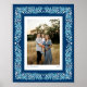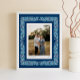 Modern and charming, this custom photo print brings a Scandinavian folk art vibe to your home decor with a printed border of navy blue with petite white flowers and light sky blue leaves that surround a photo of your choice. The text below can be personalised with names and the year or a message that is meaningful to you. Hang this poster as is or put in a simple wooden frame for a sweet country cottage aesthetic that will warm up your space and delight those that see it.