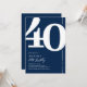 Introducing a navy blue and white 40th birthday party invitation that seamlessly blends the old-world charm of the bold serif font number '40' with a modern, user-friendly personalizable template. This invitation isn't just a card, it's a meaningful keepsake to cherish the milestone of turning 40.