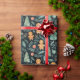 Navy Blue Gingerbread Men & Christmas Greenery Wrapping Paper