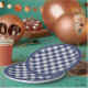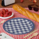 The simple geometric design in the background is a navy blue and white, printed gingham checks pattern with a navy ring around the rim. A great idea for your next party, no matter the event. This design is suitable for all occasions or events including: birthday party, baby shower, graduation, congratulations, and more.