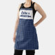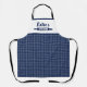 A modern trendy personalised apron that would make a perfect gift for any budding cook, chef or baker. A durable, evergreen pattern of navy blue gingham covers most of this all over print apron. At the top of the apron is a plain white space with a template to personalise, simply replace the name in the text box to do so. Below the name is an image of a rolling pin in blue with the word "kitchen" in white lettering printed across it. A practical customised gift for that someone special.