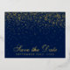 Navy Blue & Glam Confetti Save The Date Real Foil Invitation Postcard