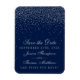 Navy Blue & Glam Silver Confetti Save The Date Magnet