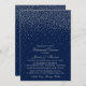 Navy Blue & Glam Silver Confetti Wedding Rehearsal Invitation