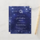 A navy blue background, decorated with faux glitter dust. The blue colour is uneven. Personalise and add a name and party details. The text graduation and the name is written with a modern hand lettered style script.