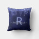 Navy blue glitter drips monogram name cushion