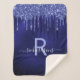 A chic navy blue background decorated with faux glitter drips, paint dripping look.The blue colour is uneven. Personalise and add your family name and monogram letter. The name is written with a modern hand lettered style script with swashes. To keep the swashes only delete the sample name, leave the spaces or emoji's in front and after the name. Light blue and white letters.