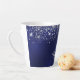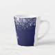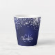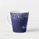 A navy blue background. The blue colour is uneven. Decorted with faux glitter drops. Personalise and add a name and monogram initials. The name is written with a modern hand lettered style script.