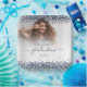 Navy Blue Glitter Photo Name Graduation 2024 Party. A touch of sparkle for your graduate party table, with faux glitter borders and Graduation in an elegant script with swashes. Easily personalise the text to your own details and replace the sample photo wth your own.