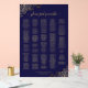 This beautiful seating chart features an elegant design with delicate golden curls and swirls in the corners on a deep navy blue background. The title is written in fancy script calligraphy and reads "please find your table." There is room for up to 300 names in alphabetical order with the names of the happy couple and wedding date at the bottom. Wonderful way to add style and class to your wedding reception while making it easy for your guests to find their seats.