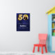A welcome poster for a 50th birthday party. A navy blue uneven coloured background. Personalise and add a name and photo.