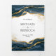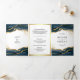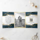 Navy Blue Gold Abstract Ink QR Code Wedding Tri-Fold Invitation