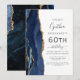 Navy Blue Gold Agate 60th Birthday Party Invitation