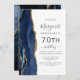 Navy Blue Gold Agate 70th Birthday Party Invitation