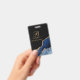 A unique version of an abstract blue black and gold foil agate geode makeup artist business badge featuring an elegant script initial and script signature. Perfect for beauty fairs or conventions as well as in your shop. A suitable style for other occupations for a chic vibe.