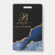Navy Blue Gold Agate Geode Makeup Artist Monogram ID Badge