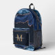 Navy Blue Gold Agate Geode Monogram Script Name Printed Backpack