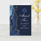 Elegant navy blue and gold agate decorates the side of this modern Bat Mitzvah party congratulations card. Mazel Tov! Customise it under the Star of David. Perfect greeting card for a chic, stylish Jewish family celebrating a girl being called to the Torah.