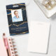 This modern elegant ID badge features navy blue and gold agate with a gold border around your custom photo, and your name and business title at the bottom. Perfect for real estate, notary, event planners, hair stylists, makeup artists, and any business professionals who want a glam modern look.