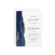 The left-hand edge of this elegant modern wedding invitation features a navy blue watercolor agate border trimmed with faux gold glitter. The customisable text combines charcoal grey script and sans serif fonts on a white background. The reverse side provides space for wedding details, along with a QR code guests can scan to visit your website and RSVP, which saves the cost of printing and mailing separate RSVP cards.
