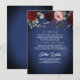 Navy Blue Gold and Red Floral Wedding Information Enclosure Card