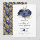 Navy Blue, Gold and Silver Floral Wedding Invitation