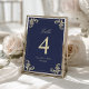 Navy Blue Gold Baroque Wedding Table Number