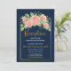 Navy Blue Gold Blush Floral Reception Insert Invitation.