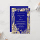 Navy Blue Gold Brown Mushroom Woodland Wedding Invitation