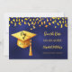Navy blue gold cap confetti Graduation Party Save The Date