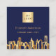 Navy blue gold city skyline modern qr code logo square business card
