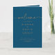 This navy blue gold classic folded wedding program is perfect for a modern wedding. The simple and elegant design features classic and fancy script typography in burnt gold.