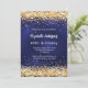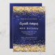 A modern, stylish and glamourous invitation for a 40th (or any age) birthday party. A navy blue background, decorated with faux gold confetti. The blue colour is uneven. Personalise and add your name and party details.